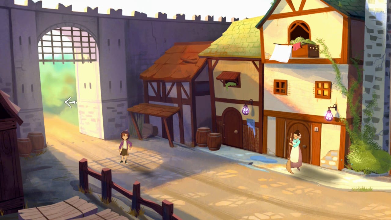 Klar, die Spielwelt von Simon the Sorcerer 1 und 2 wirkte in ihrer Pixelpracht anno dazumal noch eine Spur verdichteter und „voller“, aber Origins ist auf der anderen Seite ein niedriger budgetierter Indie-Titel. Allenfalls die Animationen hätte ich mir ein stückweit flüssiger gewünscht, um den Zeichentrick-Style konsequenter umzusetzen. Die meisten NPCs und Interactibles kommen mit relativ wenig Animationsphasen, was das Ganze in Bewegung ein klein bisschen hölzern anmuten lässt. Dafür läuft das Spiel auf allen Plattformen, in meinem Fall die Nintendo Switch, gänzlich ohne Probleme.